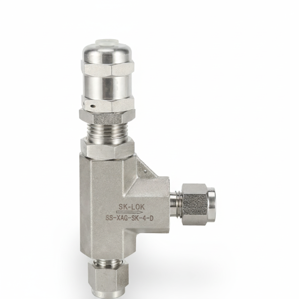 XYF-XAG-SK / Stainless Steel / High Pressure 6000 PSI Compression Ends / Adjustable Proportional Relief Valve Safety Valve / Forged Body Proportional Relief Valve Safety