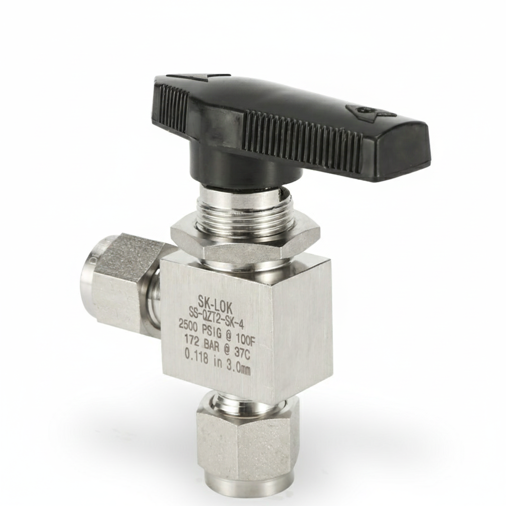 QZT2-SK Two-way Angle-type Valve with Ferrule / Compression Tube Ball Valves/ Instrument 1/4" OD 6000psi 2 Way Double Ferrule Fitting Ball Valves / Stainless Steel Mini Angle Ball Valve