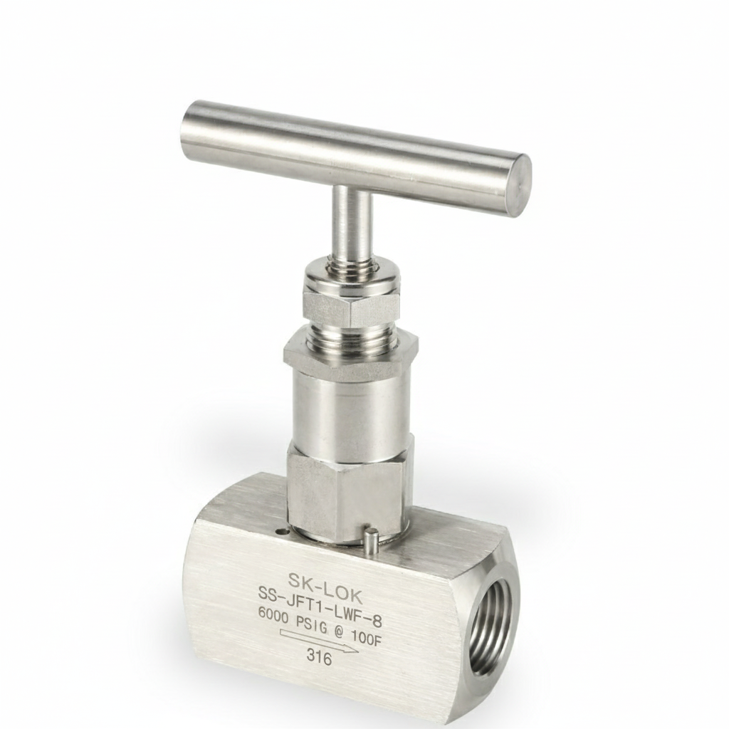 JFT1 Female Straight Needle Valve / Stainless Steel 316/ 6000 PSI / Bar Stock Two Way Needle Valves / Instrumentation Adjustable Female Straight Swagelok Type Needle Valve