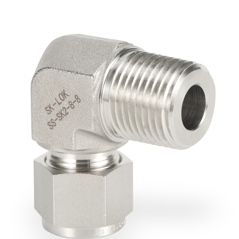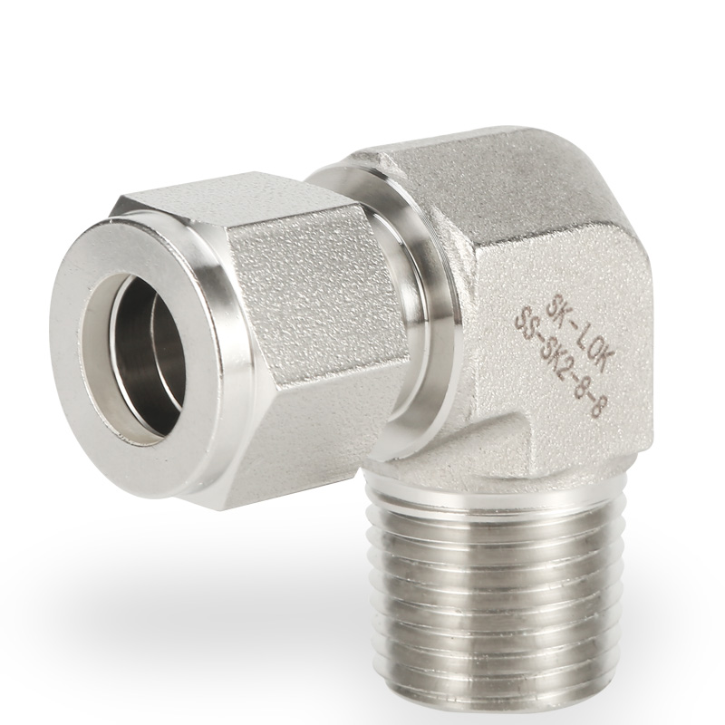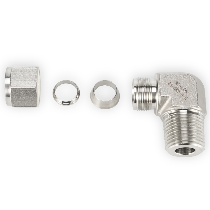 SK2 (NPT) Male Elbow / 1/4" Tube x 1/4" NPT / Twin Ferrule / Compression Tube Fittings / Instrumentation Fittings / 316 Stainless Steel / 90 Male Elbow Tube fittings / 1/16" to 1", and 2mm to 25mm
